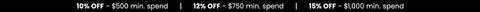 - 10% off with a minimum spend of $500